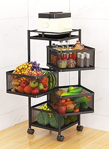 Multi-Layer Kitchen Storage Shelf, Round Steel Rotating with 4 Movable Wheels, Kitchen Storage for Fruit and Vegetable Floor-Standing