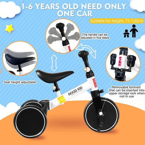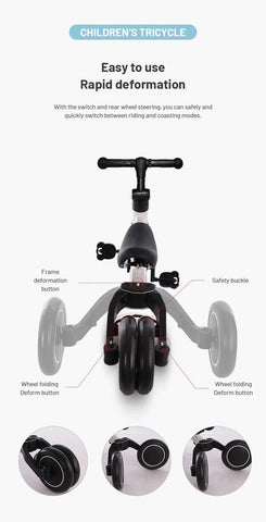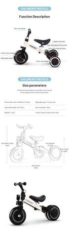 3-in-1 Tricycle: Depending on your child's age, it can be transformed into 3 ways, as a tricycle, bicycle, or running bike, and the angle of the handle and the saddle altitude can be adjusted according to your child's growth. Once it is used as a tricycle, you can change the role and use it for a long time according to the growth of your child
