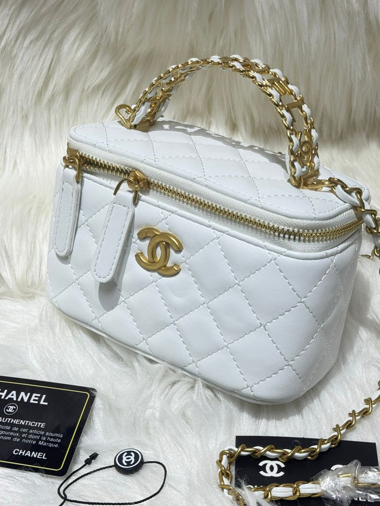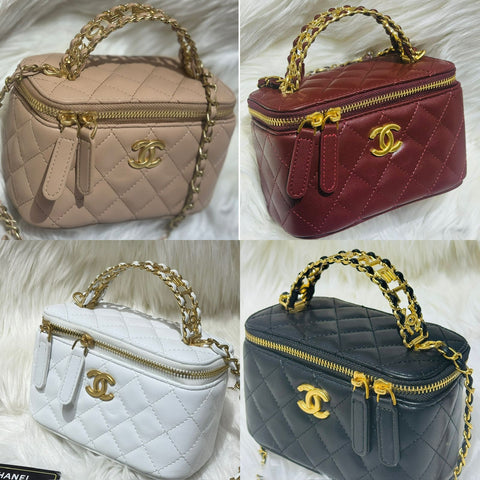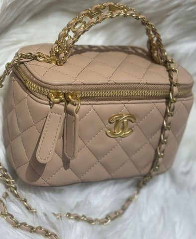 The Chanel Vanity Bag is a stylish and luxurious accessory that combines functionality with high fashion. Known for its unique, boxy shape, the bag is designed to resemble a vintage vanity case, offering a retro yet modern aesthetic. It typically features the iconic Chanel quilted leather, interlocking CC logo, and a chain-link strap that can be worn crossbody or doubled for a shorter, shoulder-carry style.
