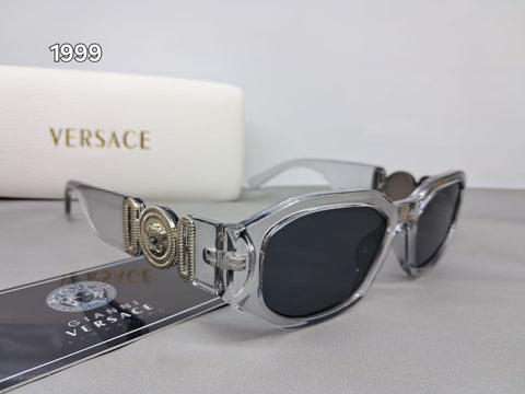 • The pair is elevated with the gold-tone heritage Medusa medallion along the temples