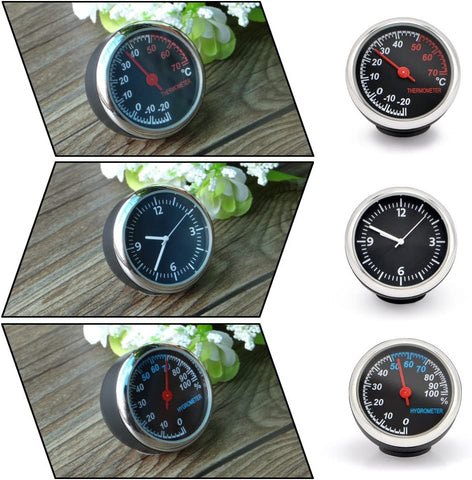 Compact and small: the size of the electronic clock/thermometer/hygrometer is approximately 4cm x 4cm x 4cm. The bottom is equipped with 3M glue, which can be installed anywhere in the car. Small and compact, it will not block the line of sight when driving.