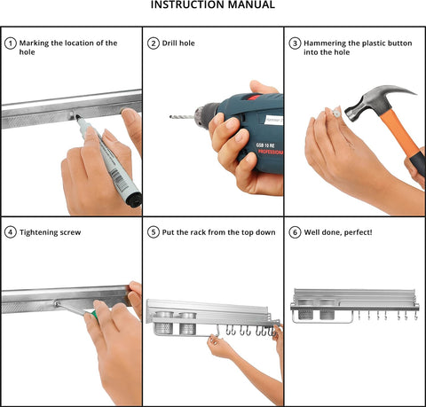 Space-Saving Design: Utilize wall space efficiently with this aluminum hanging rack, keeping your kitchen organized and clutter-free.