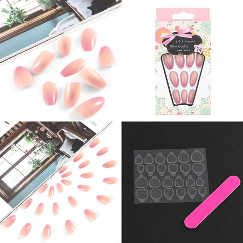 SIZE : 24pcs set full nail design false nail tips with free nail glue sticker and mini nail file. You can choose the most suitable false nail for yourself. It's easy to trim and file them in any length and shape you like.