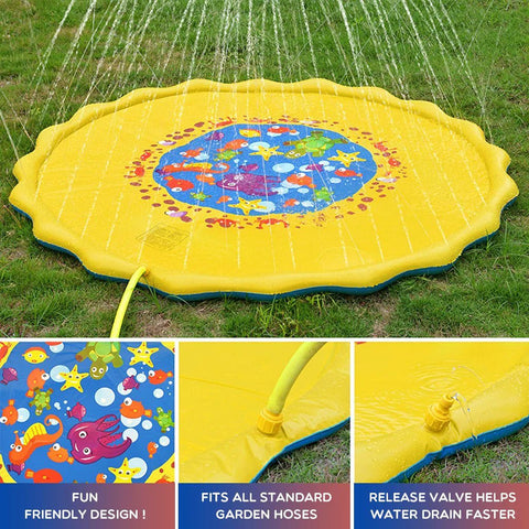 Growing Through Play: This sprinkler mat is an educational baby swimming pool. Your child can learn bright colors and count the number of marine life while playing. This will help children to be excited about some knowledge in the game learning!