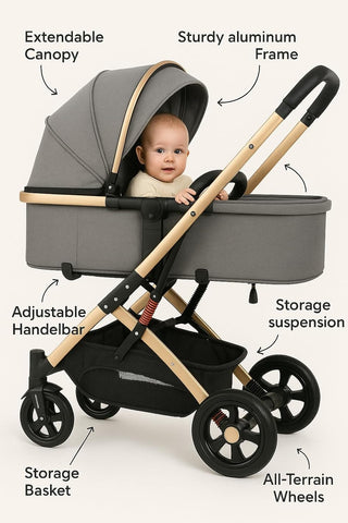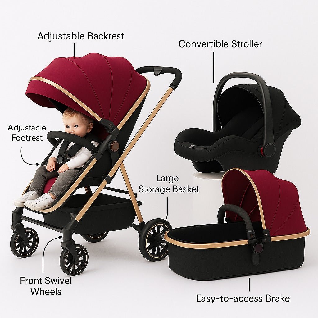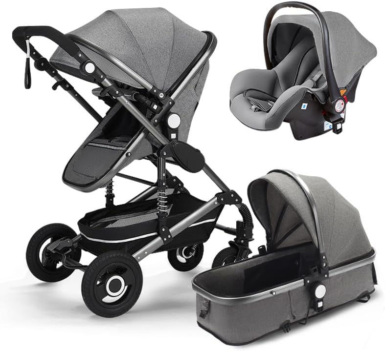 3-in-1 Baby Stroller with Carrycot, Car Seat & Reclining, Lightweight Travel Stroller, Foldable Baby Stroller, baby stroller 0-3 years