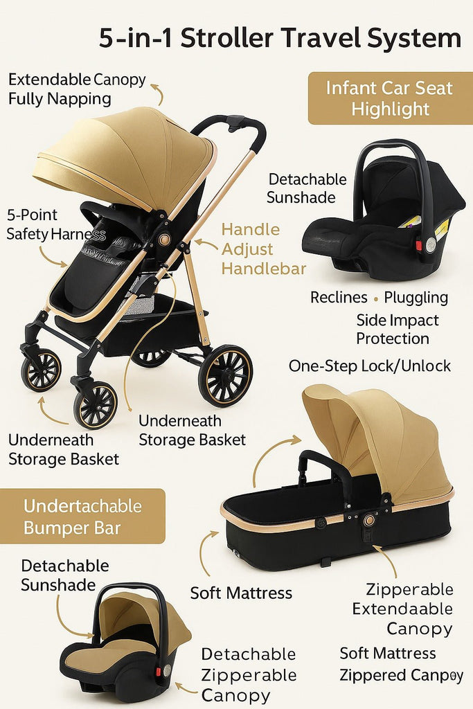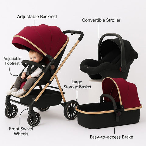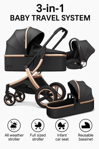 VERSATILE 3-IN-1 SYSTEM: Complete travel system includes a lightweight stroller frame, detachable carrycot for infants, and compatible car seat for seamless transitions