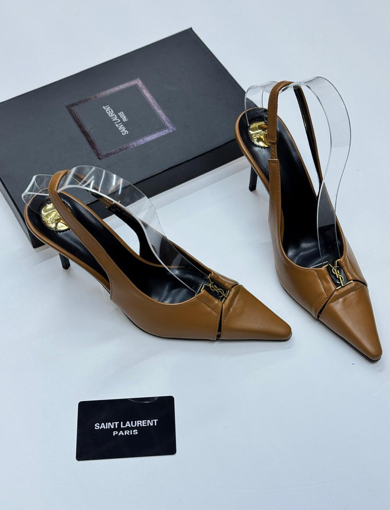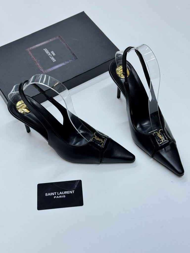 Crafted from luxurious leather (or patent leather, depending on the variation), the Babylone Breteuil showcases YSL’s signature elegance with a slingback strap for a secure yet feminine fit. The logo-engraved heel and subtle branding add a touch of understated luxury, making these pumps a versatile choice for both office wear and evening glamour.