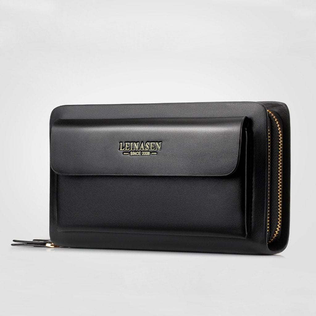 The inner structure of the bag : zipper, large banknote, card, and change.