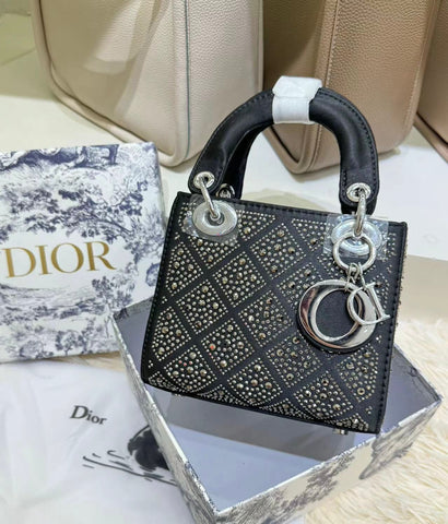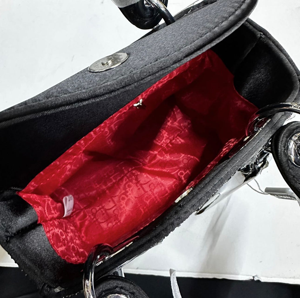 CD Lady Dior Mini Black Satin Strass Cannage Bag