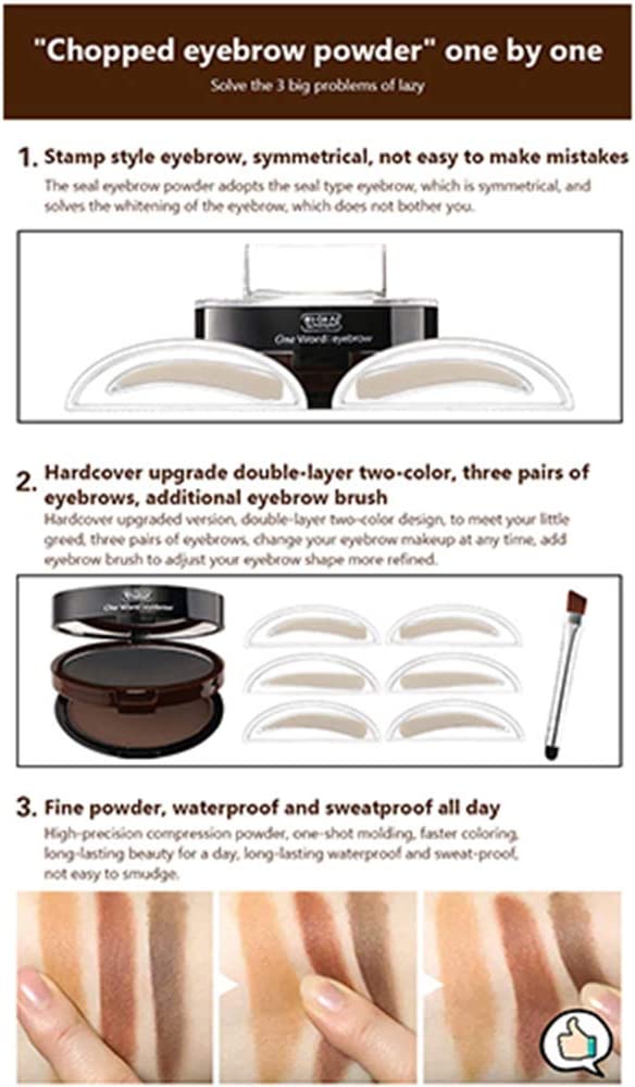 - ★ Package includes:1*Eyebrow Box with Mirror. 3*Pair Different Eyebrow Shape Stamp.1*Eyebrow Brush.