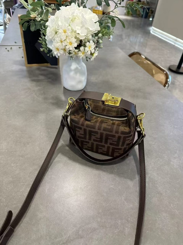 This compact Bowling bag from Fendi has been crafted from signature tobacoo Zucca canvas and accented with gold tone hardware. The bag comes with dual rolled handles and a zip top closure that opens to a fabric lined interior sized to hold all your daily essentials.