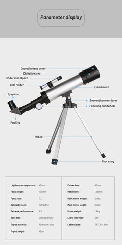 Adjustable: The tripod is made of aluminum alloy, which is stable and reliable, foldable and convenient to carry. Adjust the left and right direction of the lens barrel, adjust it to the appropriate position according to the objects in different directions, and then tighten the knob, which is simple and convenient. Manual focus can be matched with different eyepieces according to requirements.
