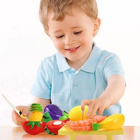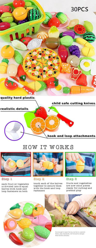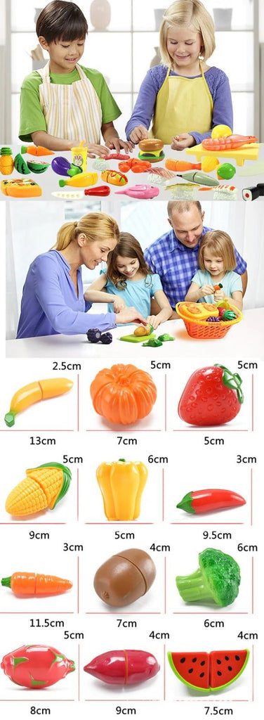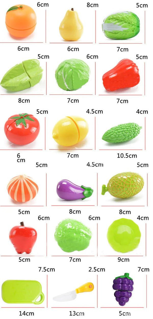 Realistic Design: Our Play food can match pieces together easily, which can be cut and played repeatedly. For children, fruits and vegetables are easy to cut.The "slicing" noise accompanying the cutting can bring endless fun to the children