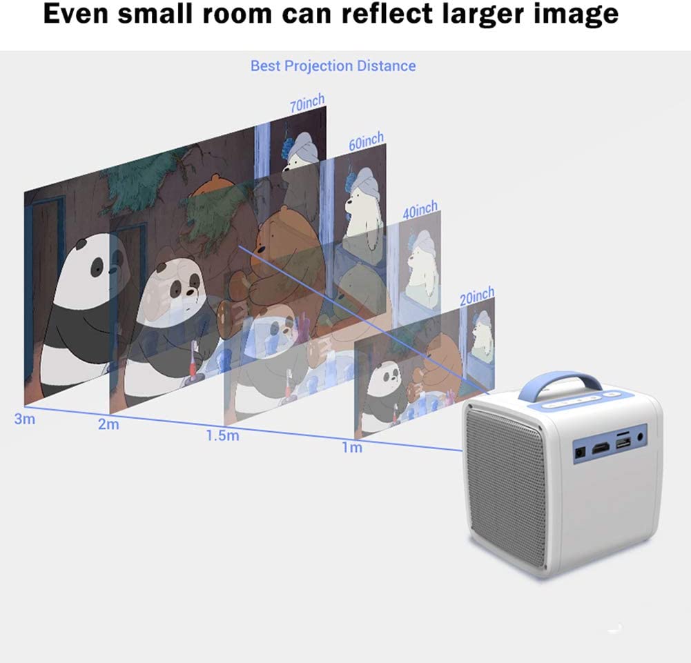 ADVANCED PROJECTION TECHNOLOGY: adjustable 20-80 inches, contrast 500:1, restore the most realistic color, support resolution 1920*1080P, support side projection, bring a fantastic movie experience to your 80-inch large screen inches .