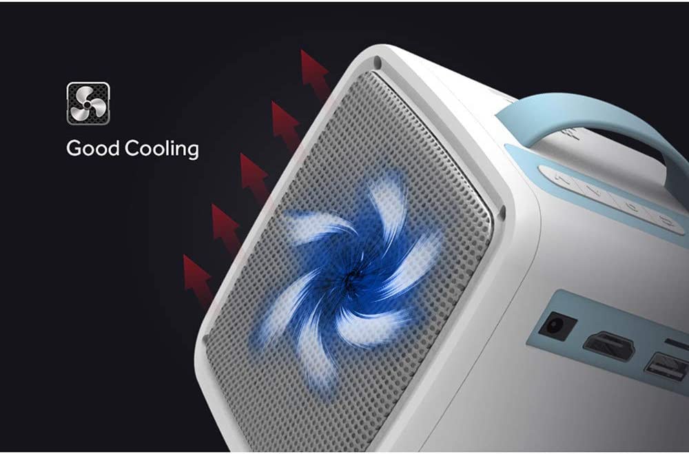 HIFI SOUND EFFECTS: stereo surround sound experience. Audio needs are met without the need to connect external speakers. The twin-turbo cooling fan provides fast heat dissipation, so the projector has lower noise reduction and more durable features.