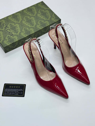 The slingback strap provides a secure and comfortable fit, while the mid-to-high heel height offers a flattering lift without compromising on comfort. The shoes often include subtle Gucci branding, such as the iconic horsebit detail or discreet logo hardware, adding a touch of signature luxury.