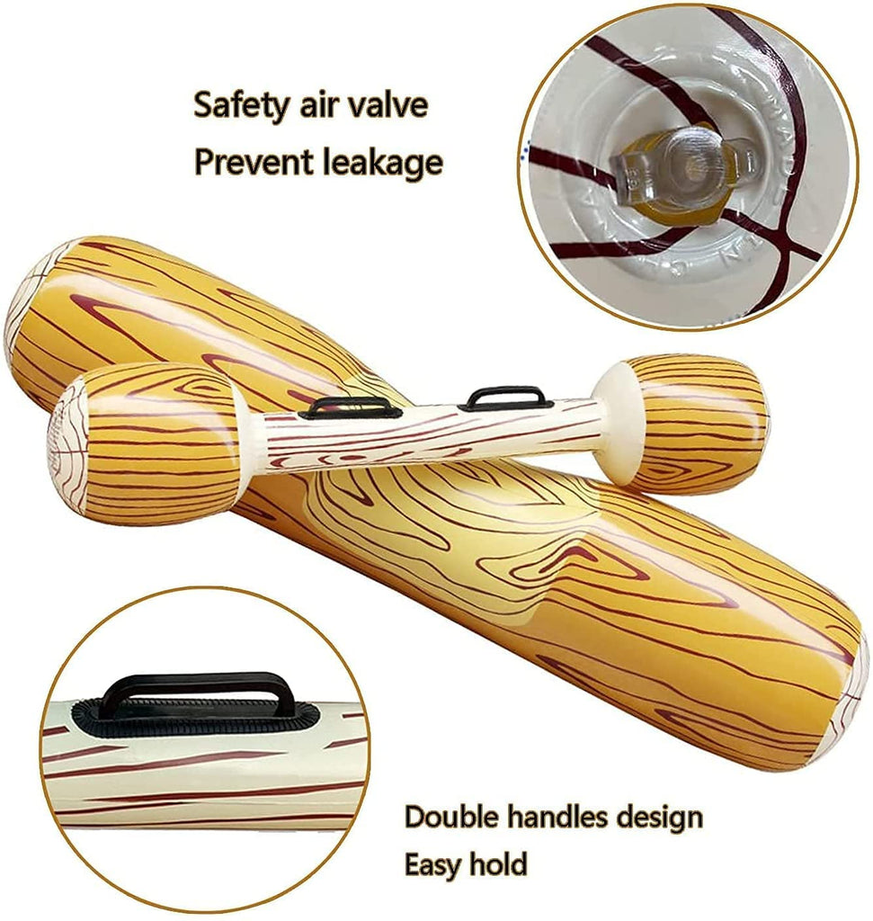 • Inflatable pool float set includes 2 sitting logs rafts and 2 walking sticks. There is a recessed design on the logs rafts, which is convenient for you to sit on it stably.